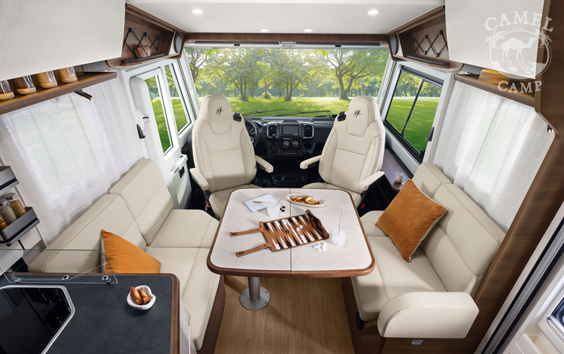 Zabudowa kempingowa: 1 x akumulator kempingowy AGM 92 Ah, system „Coming Home”, głośniki części kempingowej, okablowanie pod TV i panele solarne, zbiornik wyrównujący ciśnienie, centralny zamek kabiny i drzwi kempingowych, stopień elektryczny, izolowany stopień wejściowy, podwójne okna kempingowe w ramie z moskitierą i zaciemnieniem, schowek w podłodze o pojemności 70l, duże okno dachowe 70 cm x 50 cm, okno dachowe nad łóżkiem przednim, oświetlenie zewnętrzne nad drzwiami kempingowymi, Truma Combi Gas 6 kW CP PLUS, 100% oświetlenie LED w części kempingowej, manualnie opuszczane łóżko nad szoferką, magnetyczne zaczepy oparć, samozamykające się szuflady kuchni z centralnym zamknięciem, 2 palnikowa kuchenka, drzwi kempingowe o szerokości 60 cm, lodówka absorbcyjna 156l, zbiornik wody czystej 120l, zbiornik wody szarej 120l