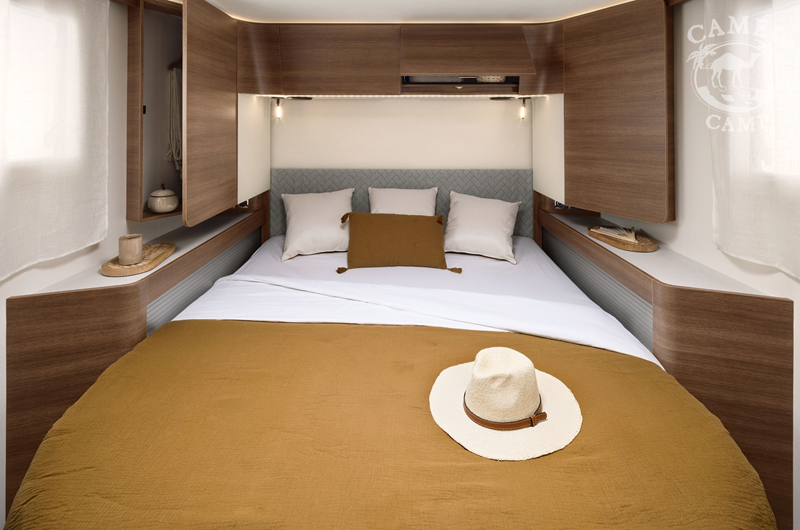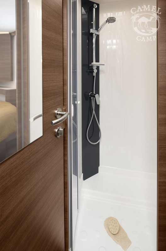 Zabudowa kempingowa: 1 x akumulator kempingowy AGM 92 Ah, system „Coming Home”, głośniki części kempingowej, okablowanie pod TV i panele solarne, zbiornik wyrównujący ciśnienie, centralny zamek kabiny i drzwi kempingowych, stopień elektryczny, izolowany stopień wejściowy, podwójne okna kempingowe w ramie z moskitierą i zaciemnieniem, schowek w podłodze o pojemności 70l, duże okno dachowe 70 cm x 50 cm, okno dachowe nad łóżkiem przednim, oświetlenie zewnętrzne nad drzwiami kempingowymi, Truma Combi Gas 6 kW CP PLUS, 100% oświetlenie LED w części kempingowej, manualnie opuszczane łóżko nad szoferką, elektrycznie regulowane łóżko tylne (góra/dół ok 30 cm), magnetyczne zaczepy oparć, samozamykające się szuflady kuchni z centralnym zamknięciem, 2 palnikowa kuchenka, drzwi kempingowe o szerokości 60 cm, lodówka absorbcyjna 156l, zbiornik wody czystej 120l, zbiornik wody szarej 120l