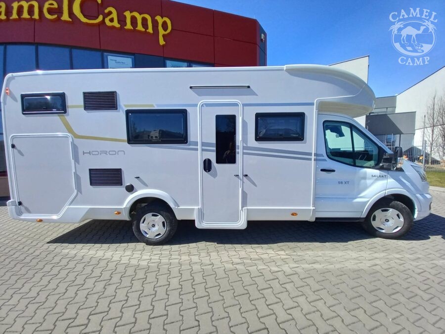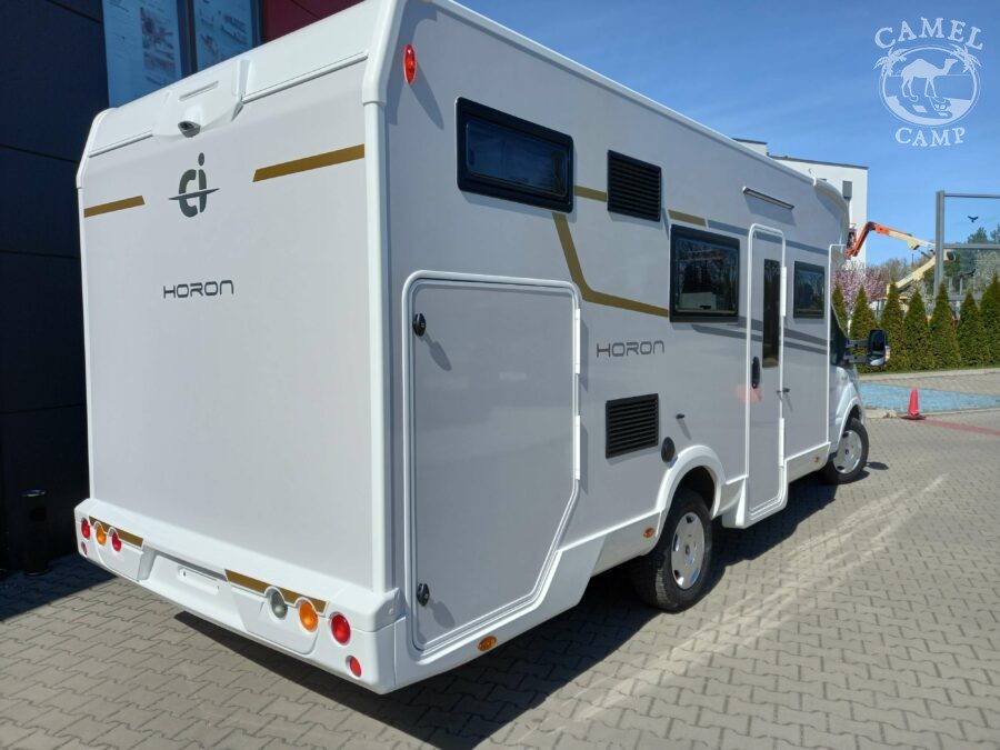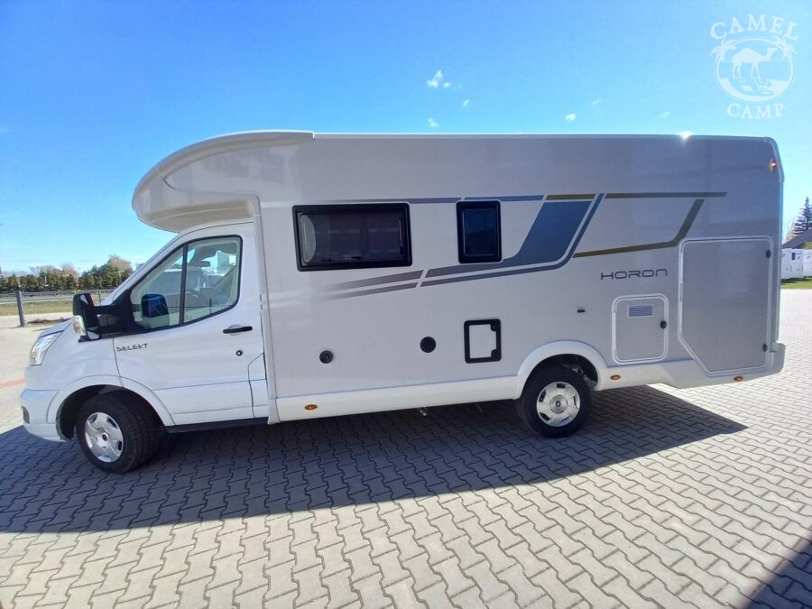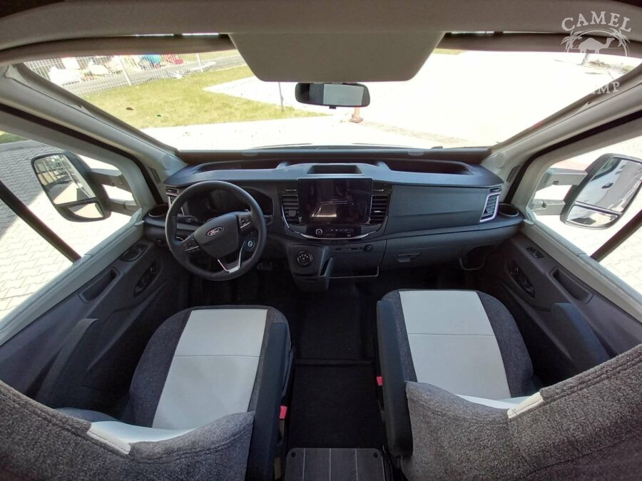 PACK FORD HORON – 2,0 165 KM, automatyczne reflektory ze statycznymi światłami doświetlającymi zakręty, zamykany schowek, „Trend” wykończenie wnętrza i deski rozdzielczej, listwy boczne w kolorze nadwozia, drzwi XL z zamykaniem 2 punktowym, oknem i centralnym zamykaniem, panel solarny 200W z kontrolerem MPPT, rolety w kabinie kierowcy.