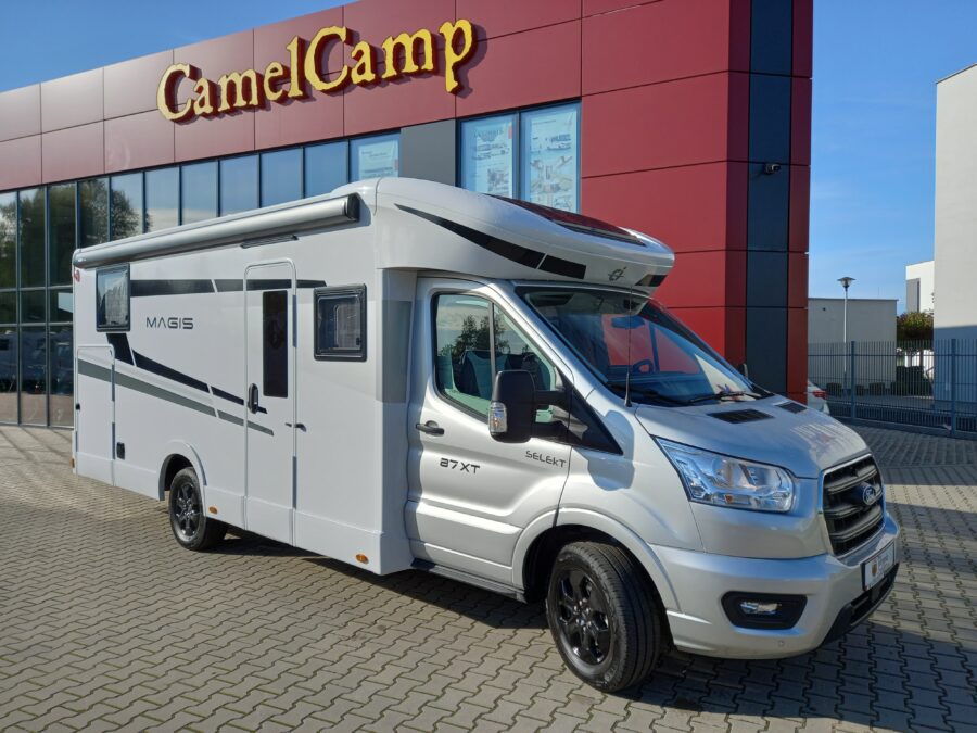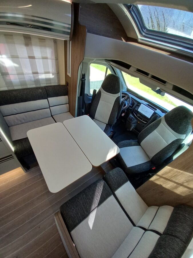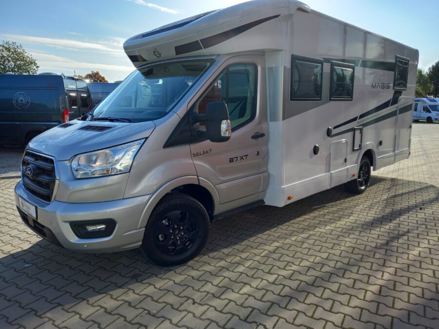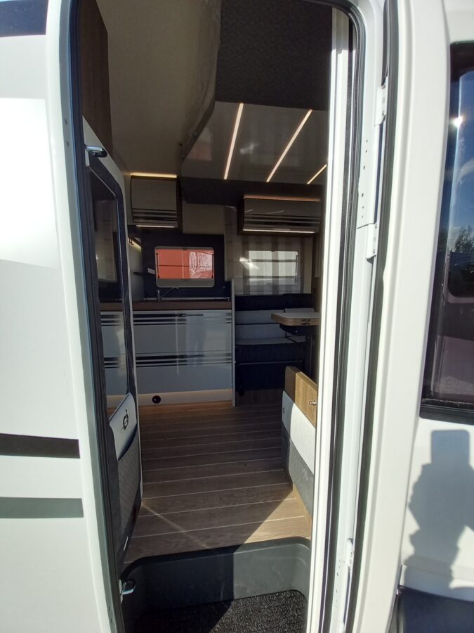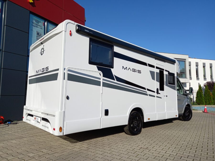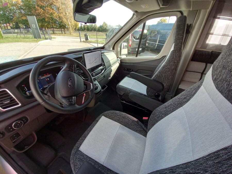 PACK FORD MAGIS – 2,0 165 KM, automatyczne reflektory ze statycznymi światłami doświetlającymi zakręty, zamykany schowek, „Trend” wykończenie wnętrza i deski rozdzielczej, listwy boczne w kolorze nadwozia, drzwi XL z zamykaniem 2 punktowym, oknem i centralnym zamykaniem, panel solarny 200W z kontrolerem MPPT, rolety w kabinie kierowcy, markiza Thule T5200 Antracite, zewnętrzne gniazdo gazowe + zewnętrzny prysznic w garażu.