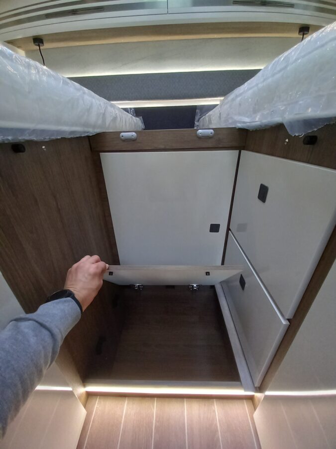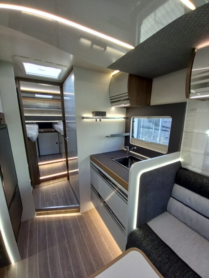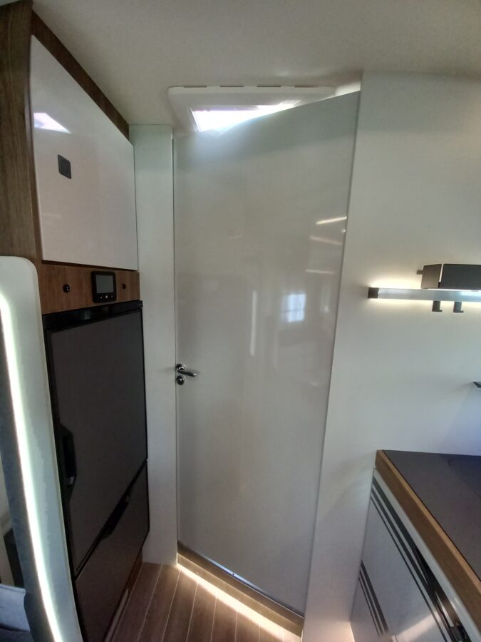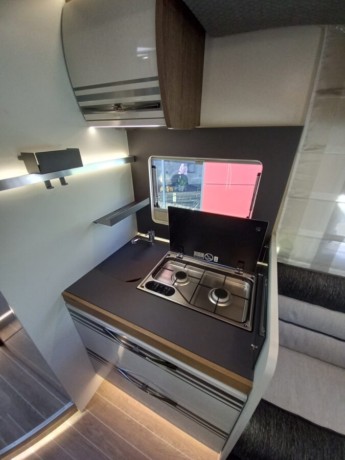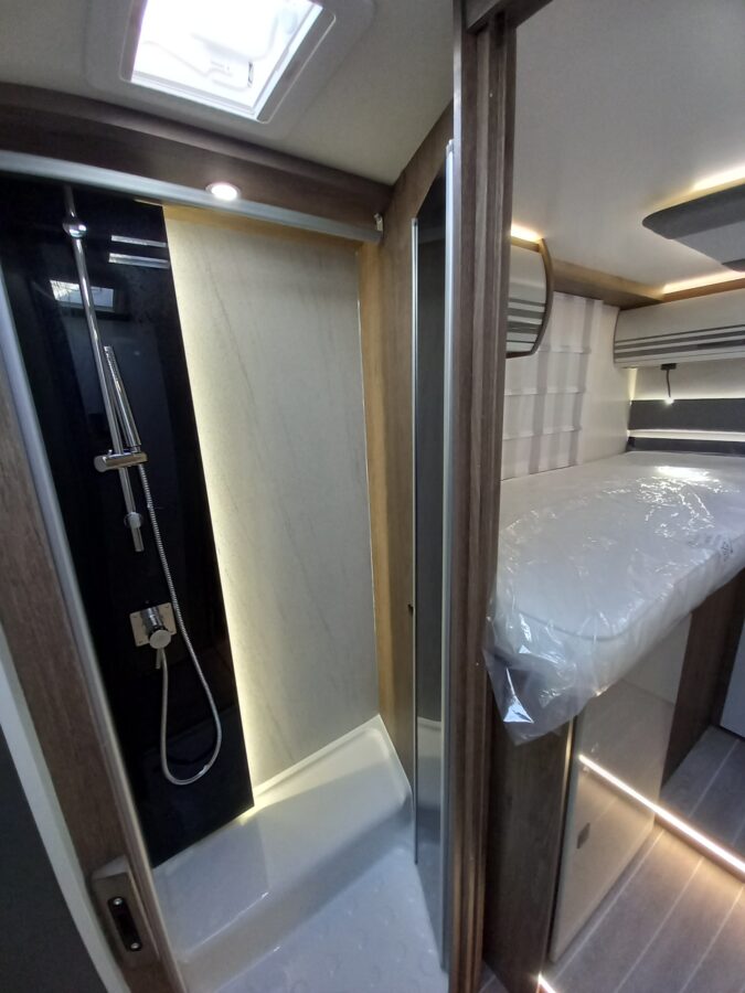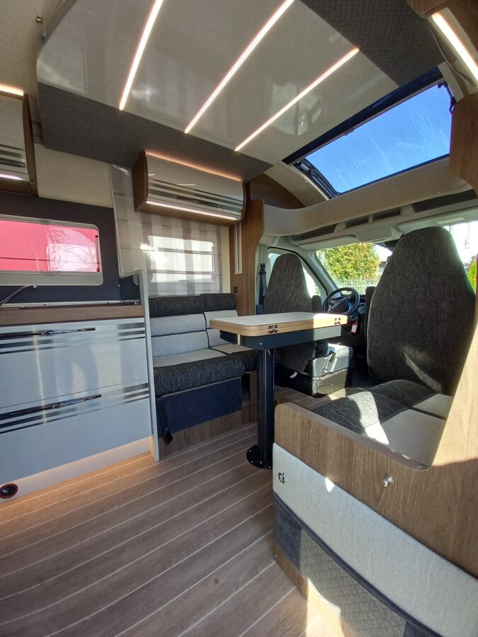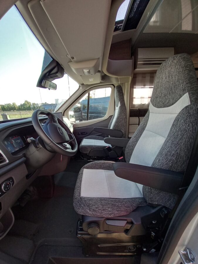 PACK FORD MAGIS – 2,0 165 KM, automatyczne reflektory ze statycznymi światłami doświetlającymi zakręty, zamykany schowek, „Trend” wykończenie wnętrza i deski rozdzielczej, listwy boczne w kolorze nadwozia, drzwi XL z zamykaniem 2 punktowym, oknem i centralnym zamykaniem, panel solarny 200W z kontrolerem MPPT, rolety w kabinie kierowcy, markiza Thule T5200 Antracite, zewnętrzne gniazdo gazowe + zewnętrzny prysznic w garażu.