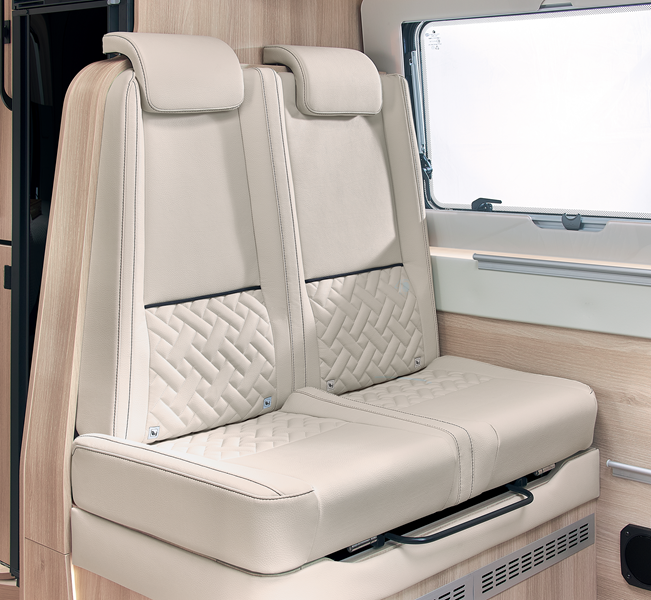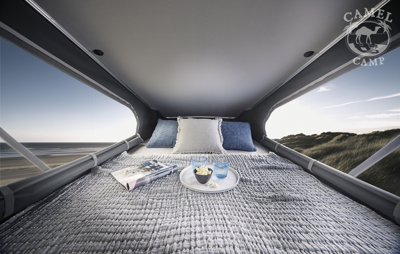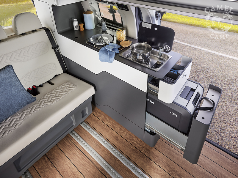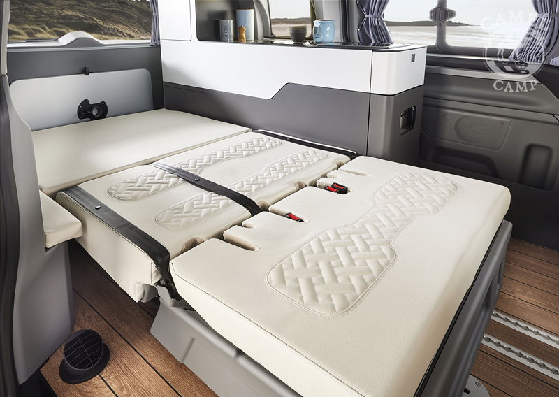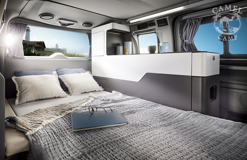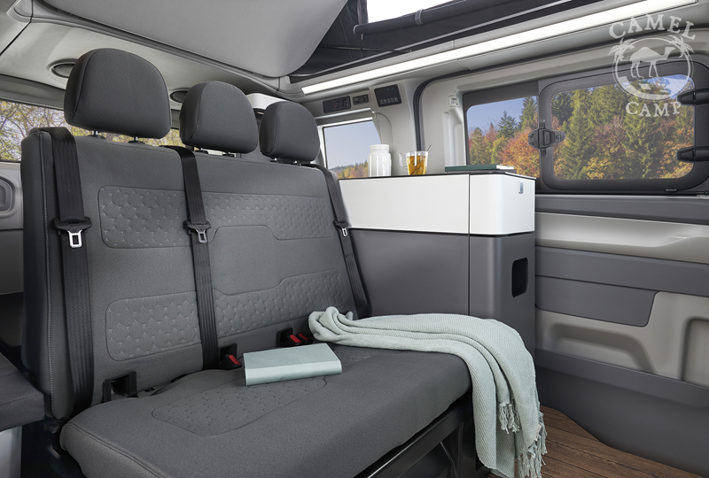 Zabudowa kempingowa: maty izotermiczne na szyby w szoferce z przyssawkami, podnoszony dach z łóżkiem dwuosobowym, meble „URBAN”, tapicerka „JAVA”, oświetlenie wewnętrzne LED, 2 x ISOFIX, kuchenka gazowa 1 palnikowa, wyjmowana chłodziarka 25L, zbiornik wody czystej 25L, zbiornik wody szarej 15L, akumulator kempingowy 92 AGM, dywanik w szoferce