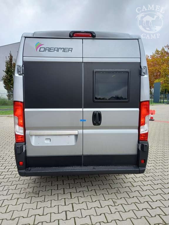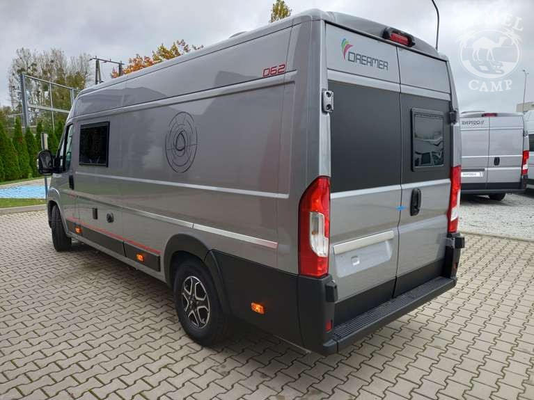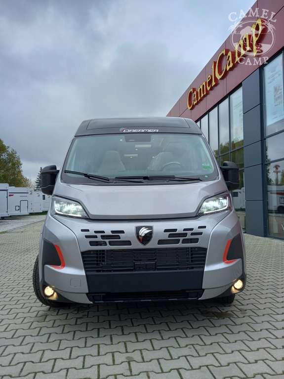 DREAMER standard PACK – Podwozie: Fiat Ducato euro 6e, 2.2L 140 KM, 15” stalowe felgi, manualna skrzynia biegów, manualny hamulec ręczny, bak paliwa 60L, system antypoślizgowy ESC z ASR, asystent podjazdu z asystentem wiatru bocznego, system ABS, Hill Holder, tempomat z limiterem prędkości, LED światła do jazdy dziennej, elektrycznie rozmrażane lusterka boczne, zestaw naprawczy koła, poduszka powietrzna dla kierowcy i pasażera, manualna klimatyzacja w kabinie kierowcy, elektryczne wspomaganie kierownicy, lakier biały