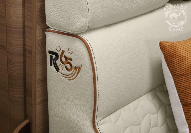 PACK 65 EDITION – specjalna dekoracja zewnętrzna 65 EDITION, tapicerka PALMA lub NOUMEA, hafty 65 EDITION, poduszki 65 EDITION, podświetlany zagłówek w sypialni, ogrzewany zbiornik wody szarej, radio PIONEER DAB 9” z funkcją APPLE CARPLAY, elektryczny hamulec ręczny, czarna deska prysznicowa, 1 x akumulator litowy 100 Ah, panel solarny 150 W