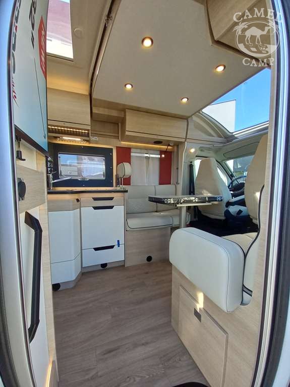 PACK SELECT – Traction + z asystentem wjazdu, DAB PIONEER® system multimedialny z ekranem 6.8” i APPLE CAR PLAY/ANDROID AUTO, kamera cofania z ekranem kontrolnym wbudowanym w deskę rozdzielczą, plisowane rolety w kabinie kierowcy, drzwi kempingowe z blokadą 2-punktową, oknem i koszem na śmieci, moskitiera drzwi kempingowych, system do podłączenia 2 butli gazowych z czujnikiem przeciw wypadkowym, sterowanie radiem w kierownicy, przedni zderzak malowany w kolorze nadwozia, przednie światła przeciwmgielne, opony wielosezonowe, drugi zestaw kluczyków (PLIP)