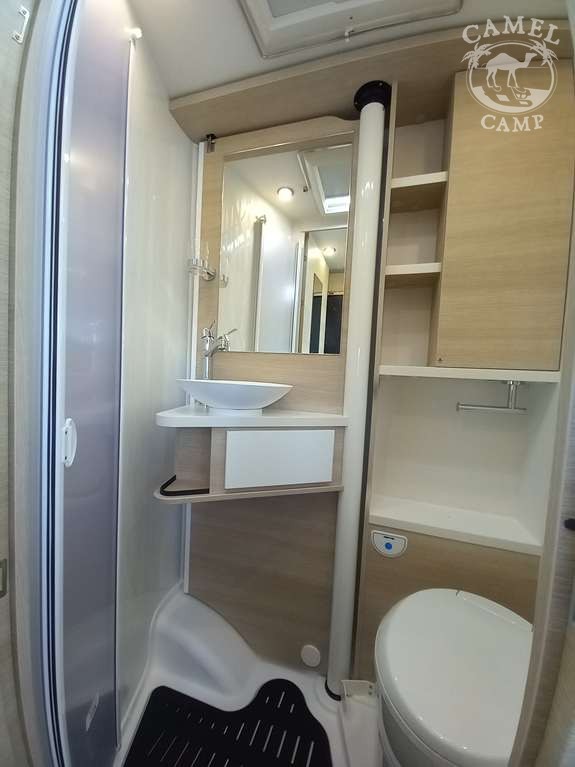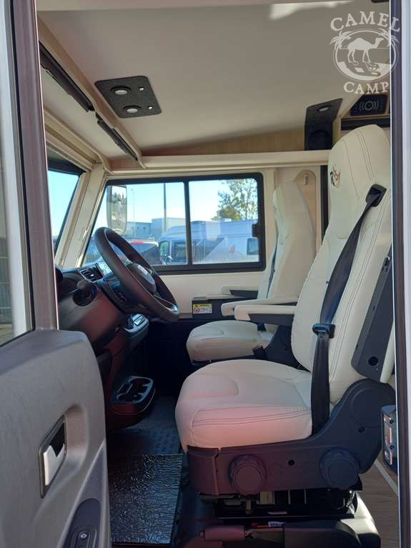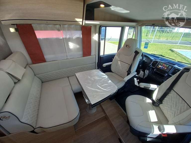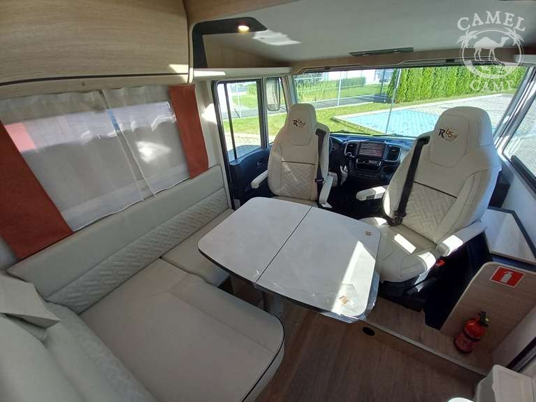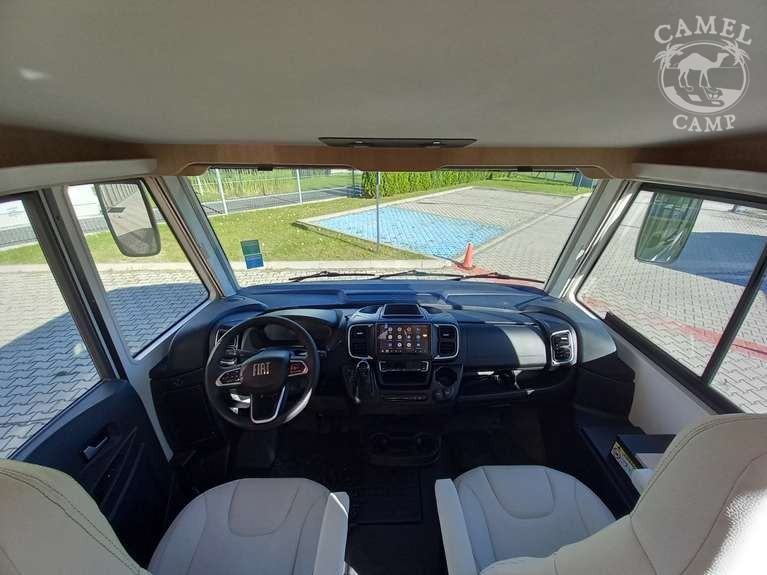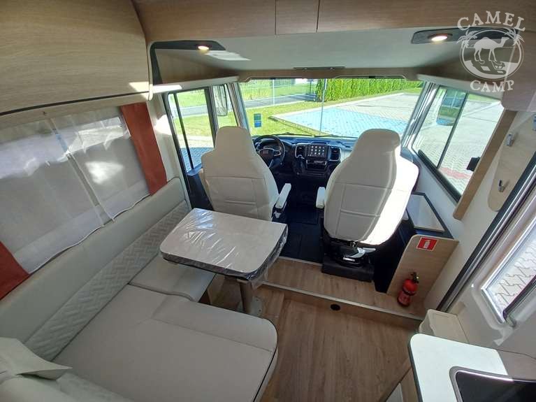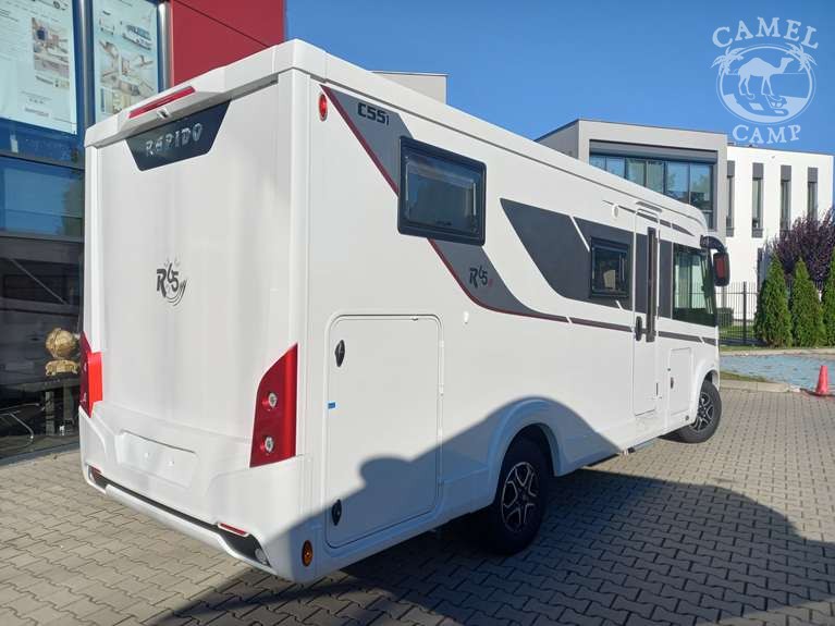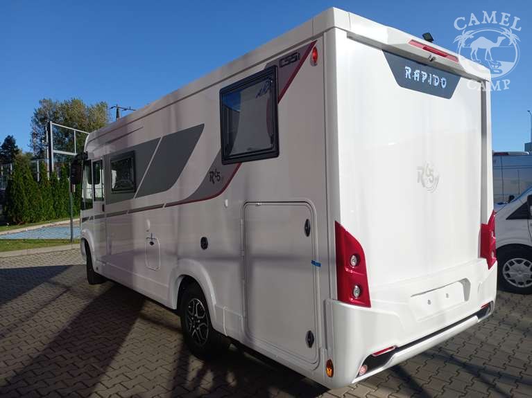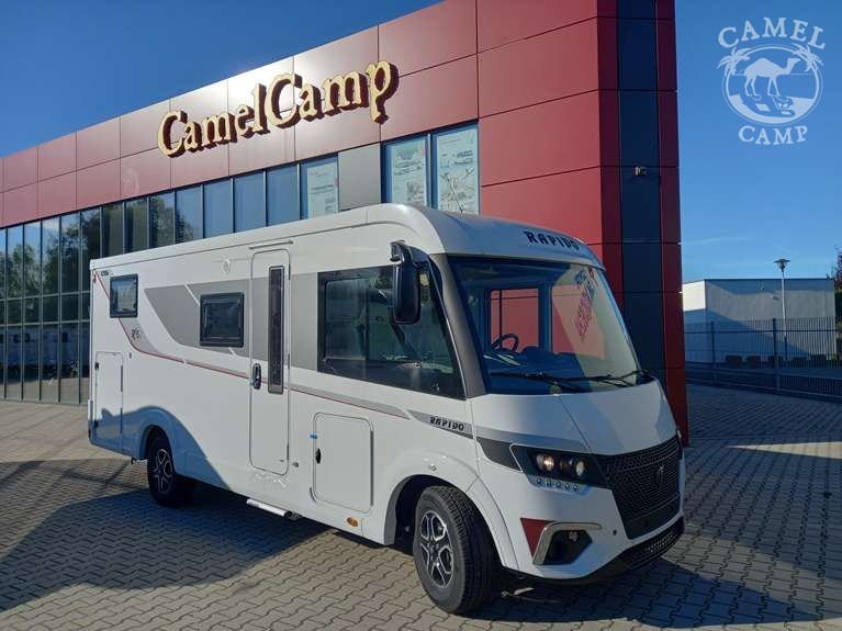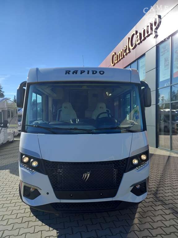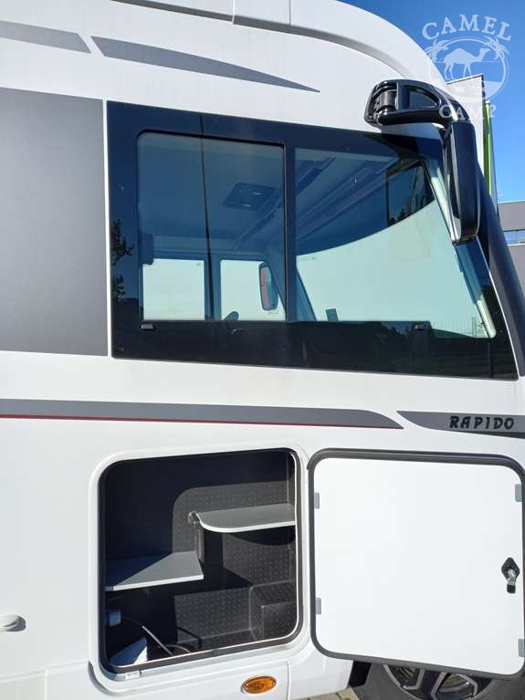 RAPIDO PACK 2026 – poduszka kierowcy, ABS, centralny zamek kabiny i drzwi kempingowych, pokrowce foteli kabiny, klimatyzacja manualna, sterowanie radiem w kierownicy, elektryczne okna kabiny, system „Coming Home”, pojemniki na kubki, Truma Combi 4 DIESEL CP PLUS, elektrycznie wysuwany stopień wejściowy, ogrzewany i oświetlony (listwa sufitowa) garaż, porty USB lampkach, lodówka kompresorowa z zamrażalnikiem 140 L, zbiornik wody czystej 110l, zbiornik wody szarej 90l, 2 palnikowa kuchenka gazowa, wyciąg kuchenny, samozamykające się szuflady kuchni z centralnym zamknięciem, podświetlana ściana kuchni, regał na przyprawy i uchwyt na papier, poszerzenie blatu kuchennego, aluminiowe rama i listwy łóżek, miejsce na TV 22, druga instalacja TV / HDMI, panoramiczne okno dachowe, zamki magnetyczne drzwi, chromowane i drewniane wykończenia łazienki, podwójne szyby kempingowe w ramie z moskitierą i zaciemnieniem, 100% oświetlenie LED w części kempingowej i garażu, 2 x dotykowy reflektor do czytania w kabinie kierowcy, wieszak do suszenia ubrań, aluminiowa rama łóżka tylnego z elastycznymi listwami, zintegrowany kosz na śmieci w drzwiach kempingowych, materac piankowy BULTEX® w tylnym łóżku