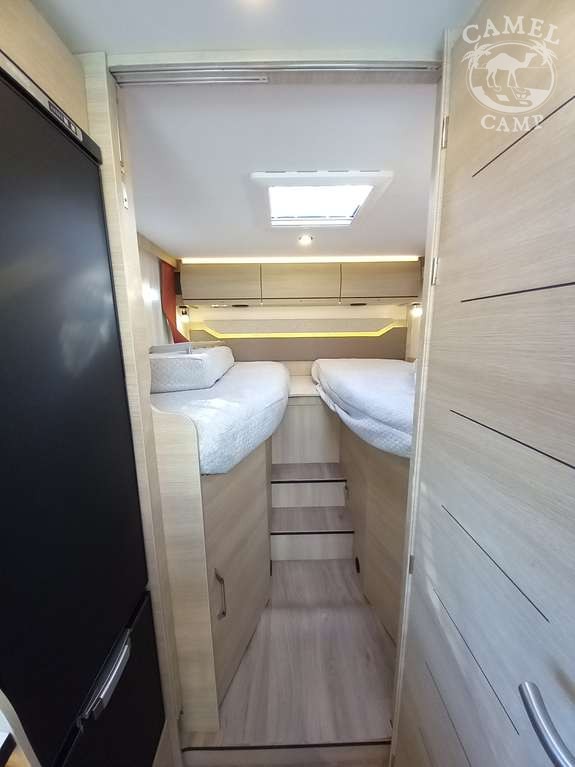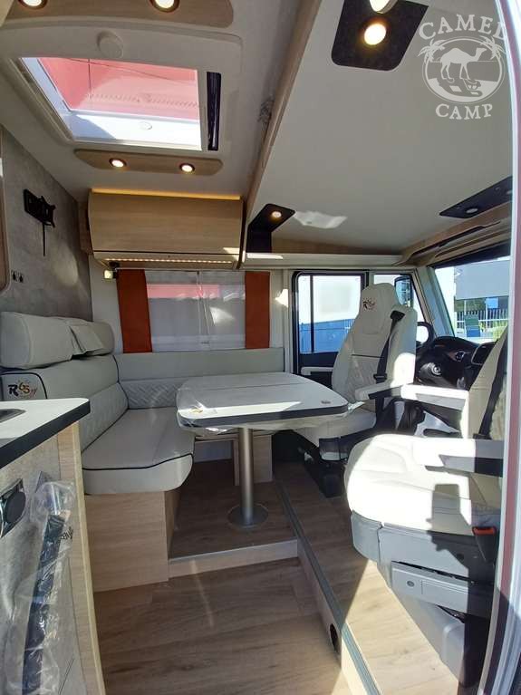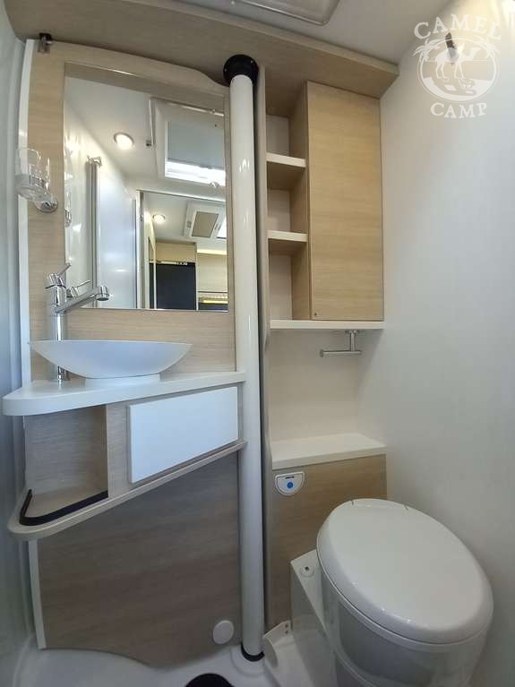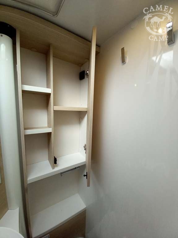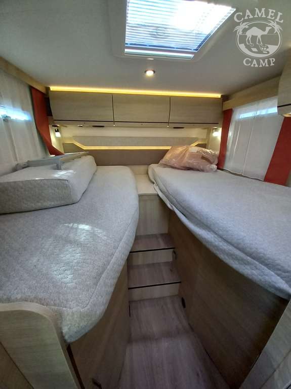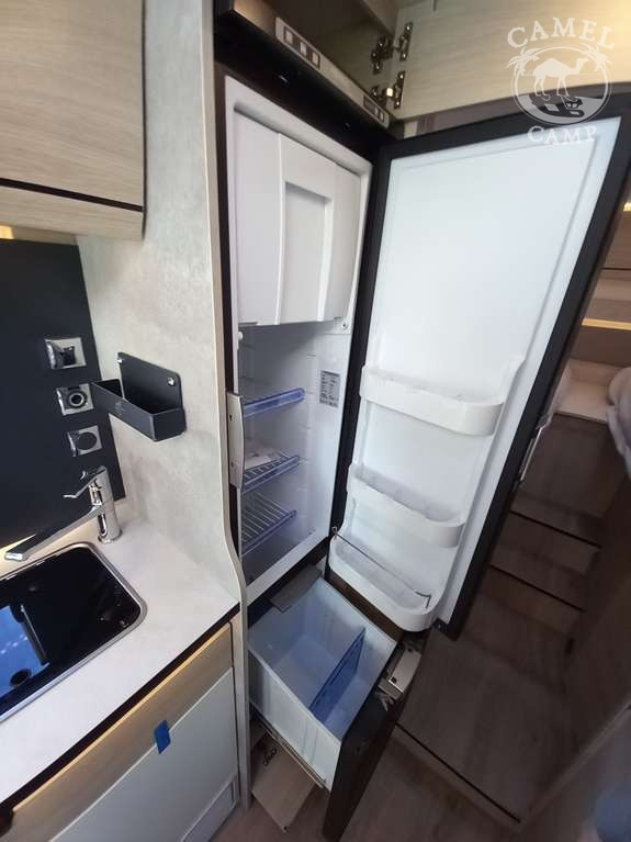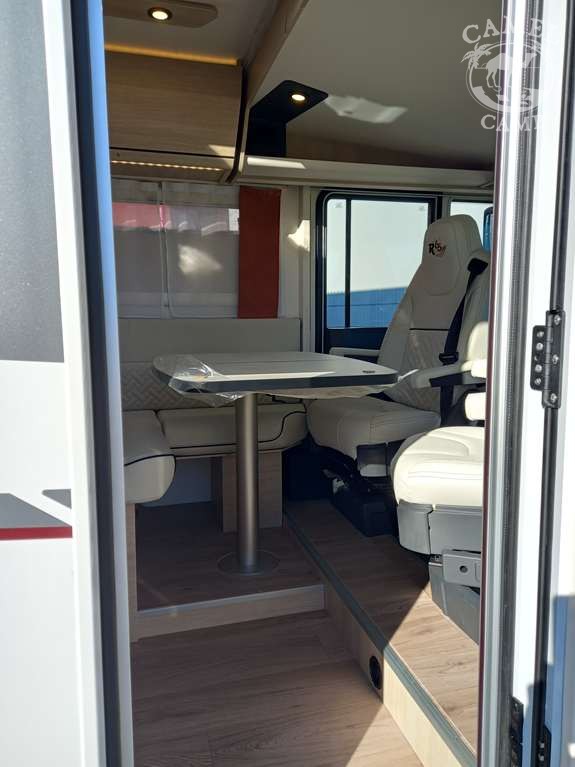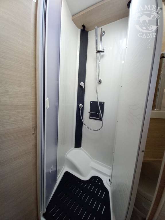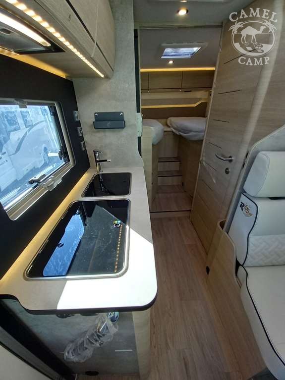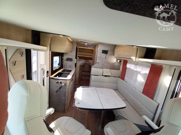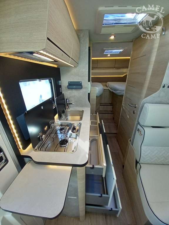 RAPIDO PACK 2026 – poduszka kierowcy, ABS, centralny zamek kabiny i drzwi kempingowych, pokrowce foteli kabiny, klimatyzacja manualna, sterowanie radiem w kierownicy, elektryczne okna kabiny, system „Coming Home”, pojemniki na kubki, Truma Combi 4 DIESEL CP PLUS, elektrycznie wysuwany stopień wejściowy, ogrzewany i oświetlony (listwa sufitowa) garaż, porty USB lampkach, lodówka kompresorowa z zamrażalnikiem 140 L, zbiornik wody czystej 110l, zbiornik wody szarej 90l, 2 palnikowa kuchenka gazowa, wyciąg kuchenny, samozamykające się szuflady kuchni z centralnym zamknięciem, podświetlana ściana kuchni, regał na przyprawy i uchwyt na papier, poszerzenie blatu kuchennego, aluminiowe rama i listwy łóżek, miejsce na TV 22, druga instalacja TV / HDMI, panoramiczne okno dachowe, zamki magnetyczne drzwi, chromowane i drewniane wykończenia łazienki, podwójne szyby kempingowe w ramie z moskitierą i zaciemnieniem, 100% oświetlenie LED w części kempingowej i garażu, 2 x dotykowy reflektor do czytania w kabinie kierowcy, wieszak do suszenia ubrań, aluminiowa rama łóżka tylnego z elastycznymi listwami, zintegrowany kosz na śmieci w drzwiach kempingowych, materac piankowy BULTEX® w tylnym łóżku