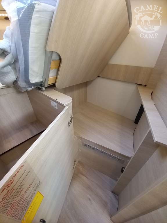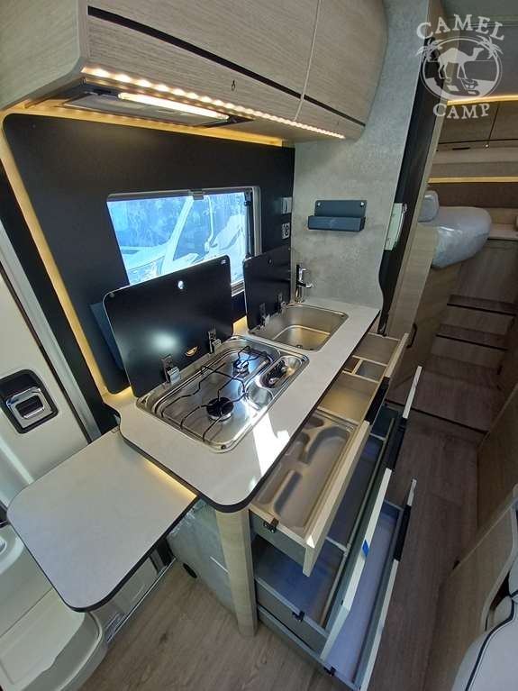 PACK SELECT – Traction + z asystentem wjazdu, kamera cofania z ekranem kontrolnym wbudowanym w deskę rozdzielczą, opony wielosezonowe, plisowane rolety w kabinie kierowcy (przednia regulowana góra/dół), drzwi kempingowe z blokadą 2-punktową, oknem i koszem na śmieci, moskitiera drzwi kempingowych, drugi zestaw kluczyków (PLIP)