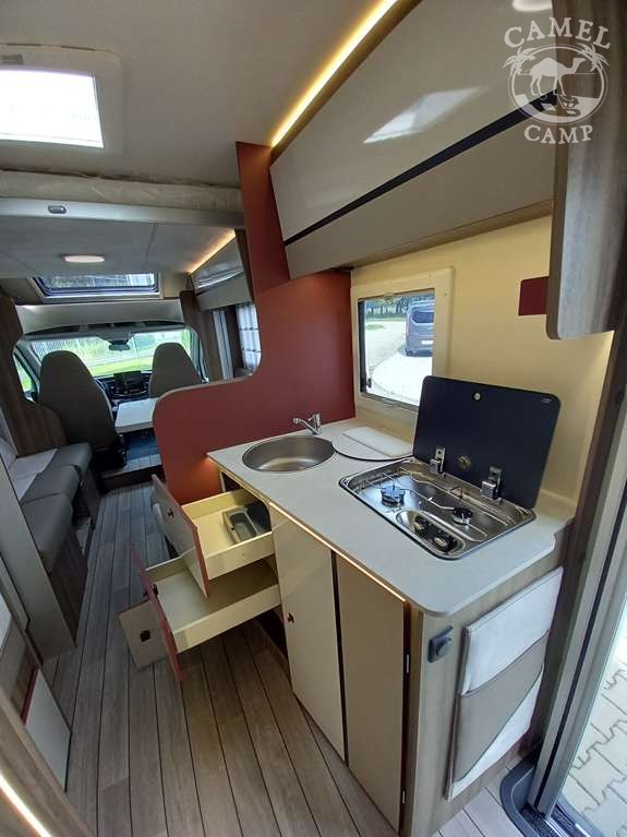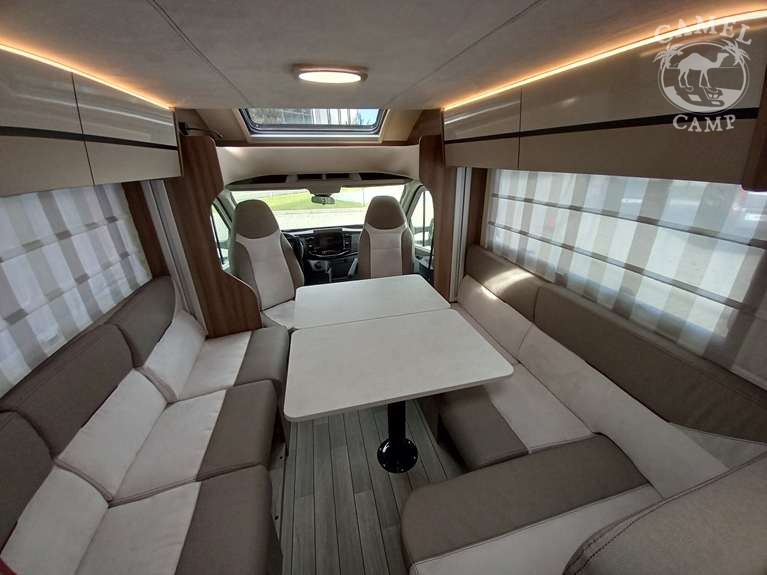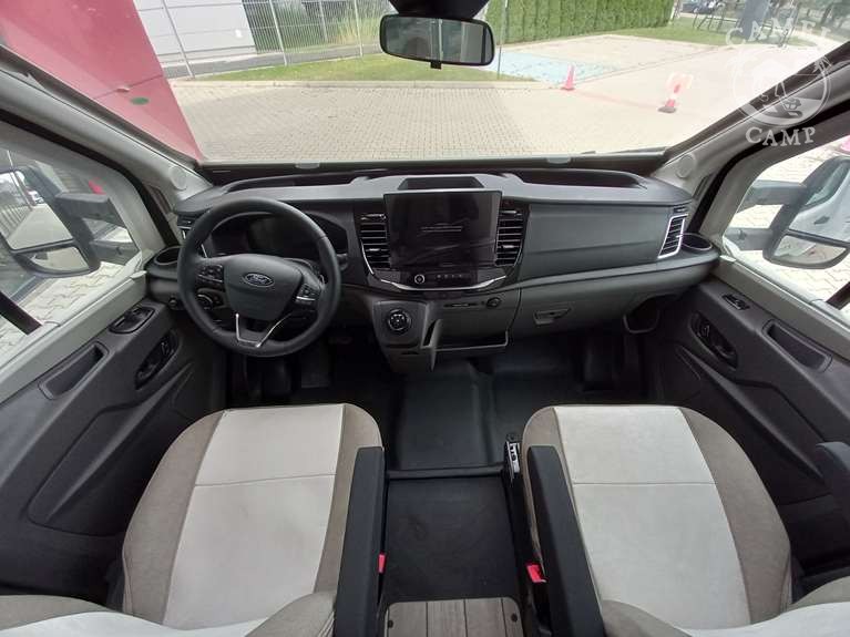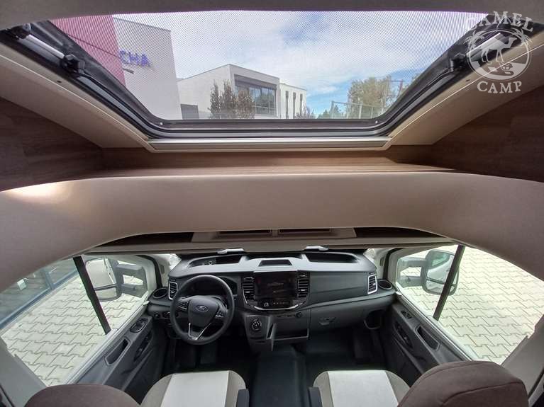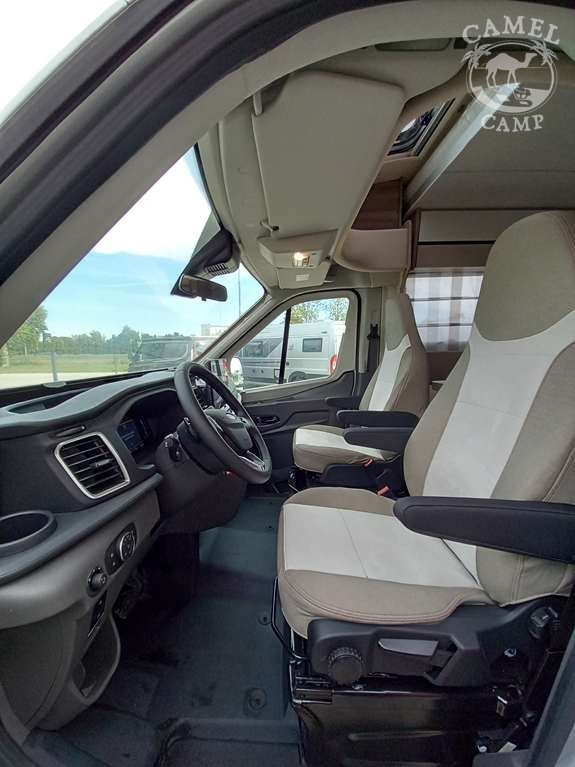 PACK FORD KRONOS – 2,0 165 KM, automatyczne reflektory ze statycznymi światłami doświetlającymi zakręty, zamykany schowek, deska rozdzielcza „Trend”, listwy boczne w kolorze nadwozia, drzwi XL z zamykaniem 2 punktowym, oknem i centralnym zamykaniem, panel solarny 200W z kontrolerem MPPT, rolety w kabinie kierowcy, pokrywa zlewu / deska do krojenia, okno panoramiczne SKYROOF (nie dotyczy alkowy), pokrowce foteli szeforki w kolorze tapicerki, pokrywa zlewu / deska do krojenia