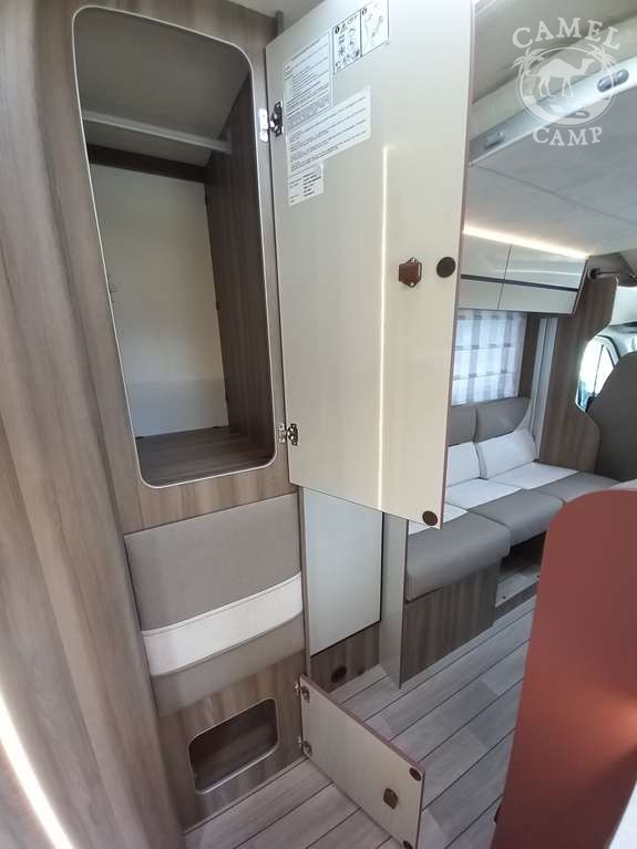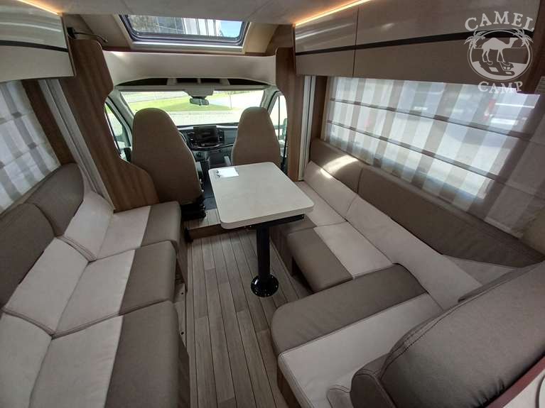 KRONOS / HORON 2026: DMC 3500kg, szerszy rozstaw osi, START&STOP, ABS + ESP, tempomat z limiterem prędkości, poduszka powietrzna kierowcy i pasażera, automatyczna skrzynia biegów (standard tylko w alkowie), klimatyzacja automatyczna, lusterka boczne z odmrażaniem, radio DAB z 12” ekranem z Apple CarPlay / AndroidAuto, 70L zbiornik oleju napędowego, zestaw naprawczy koła, 16” stalowe koła z kołpakami, lakier kabiny biały, światła przeciwmgielne, elektryczny hamulec ręczny, automatyczne wycieraczki, automatyczne reflektory, światła dzienne halogenowe, kamera cofania, FORD emergency service, system CMBS (system ograniczający skutki kolizji), system monitorowania pasa ruchu, system rozpoznawania znaków prędkości, Wrong-Way system, przednie czujniki parkowania, TPMS – system monitorowania ciśnienia w oponach, 8” pół-cyfrowy panel komputera pokładowego, modem 5G, elektrycznie regulowana noga stołu w części salonu (234/34), elektrycznie regulowane łóżko opuszczane w części salonu, zagłówki foteli w układach face2face, okna SEITZ, 1 x ISOFIX, 100% LED światła tylne, gniazda USB w części salonu i sypialni, gniazdo 230V w garażu, drzwi XL z jednym punktem ryglowania, moskitiera drzwi kempingowych, 2 palnikowa kuchenka gazowa, lodówka absorpcyjna o pojemności 137 L lub 145 L (w zależności od układu), elektrycznie regulowane tylne łóżko małżeńskie, ogrzewanie Truma Gas Combi 4 (poza 234/34), ogrzewanie Truma Diesel Combi 4 (tylko 234/34), termiczne zaciemnienia kabiny, okno panoramiczne (jeśli półintegra), możliwość połączenia łóżek pojedynczych, okna dachowe Mini Heky 40 x 40 cm, okno dachowe w łazience 28 x 28 cm, standardowa tapicerka Fitgrey / Cozy (materiał)