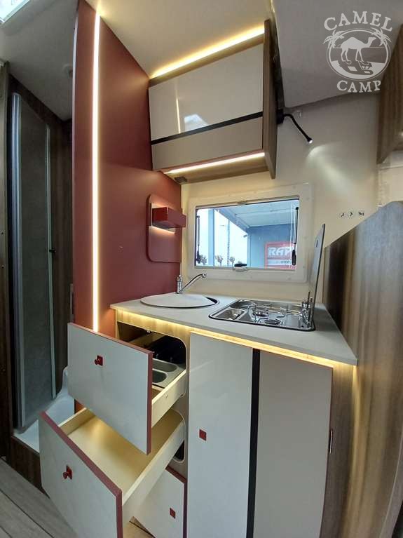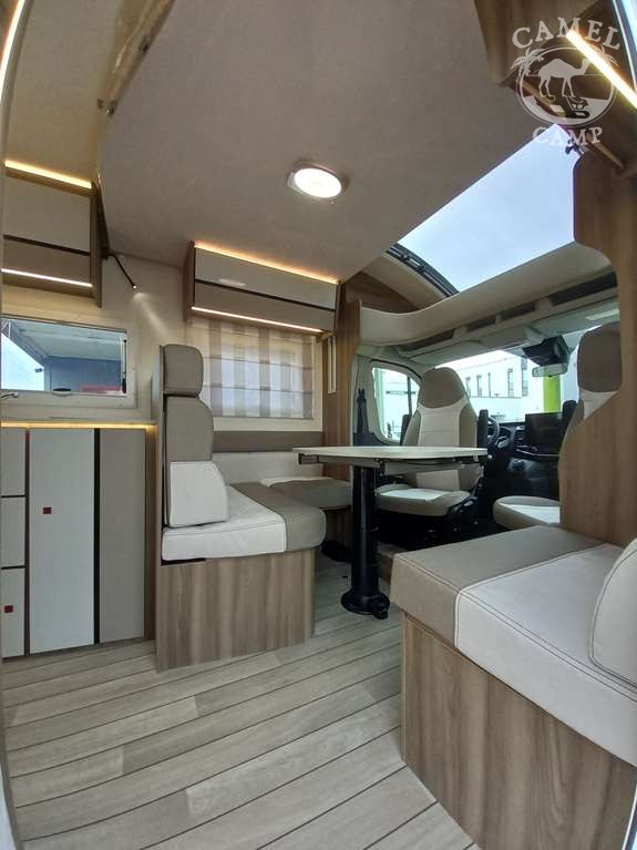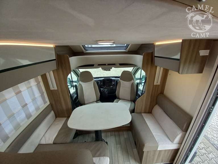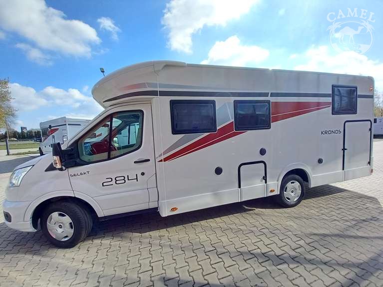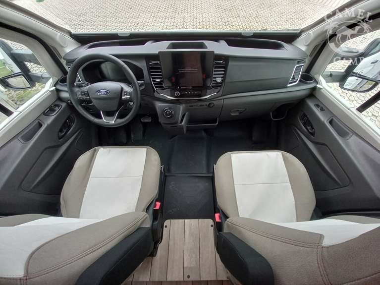 PACK FORD KRONOS – 2,0 165 KM, automatyczne reflektory ze statycznymi światłami doświetlającymi zakręty, zamykany schowek, deska rozdzielcza „Trend”, listwy boczne w kolorze nadwozia, drzwi XL z zamykaniem 2 punktowym, oknem i centralnym zamykaniem, panel solarny 200W z kontrolerem MPPT, rolety w kabinie kierowcy, pokrywa zlewu / deska do krojenia, okno panoramiczne SKYROOF (nie dotyczy alkowy), pokrowce foteli szeforki w kolorze tapicerki, pokrywa zlewu / deska do krojenia