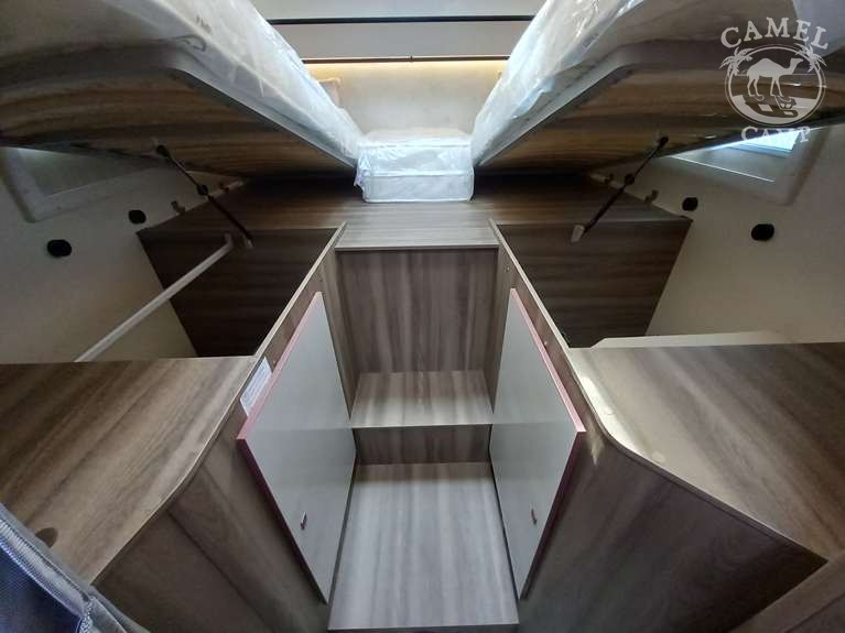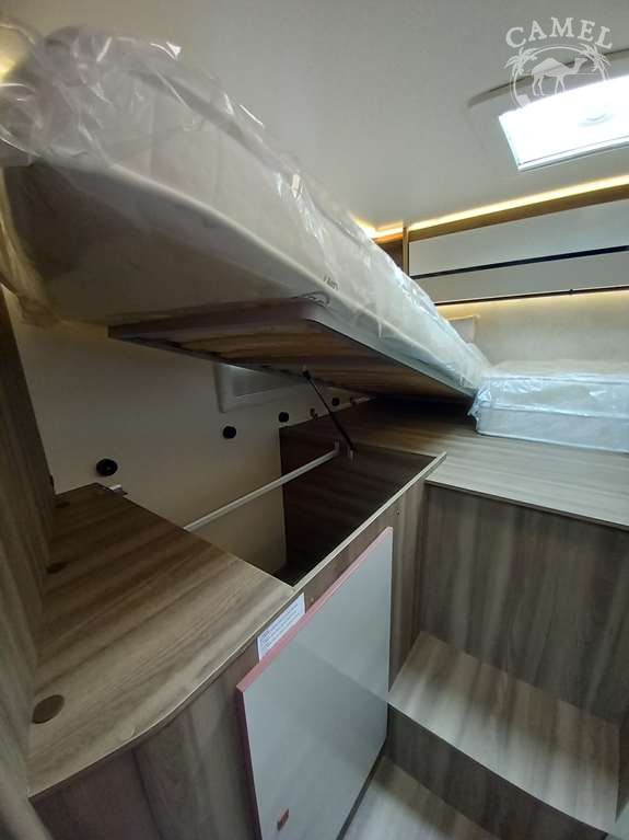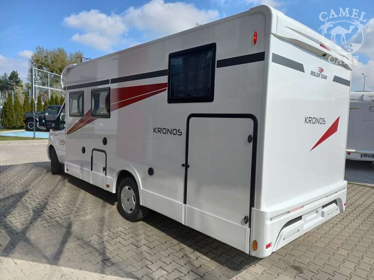 KRONOS / HORON 2026: DMC 3500kg, szerszy rozstaw osi, START&STOP, ABS + ESP, tempomat z limiterem prędkości, poduszka powietrzna kierowcy i pasażera, automatyczna skrzynia biegów (standard tylko w alkowie), klimatyzacja automatyczna, lusterka boczne z odmrażaniem, radio DAB z 12” ekranem z Apple CarPlay / AndroidAuto, 70L zbiornik oleju napędowego, zestaw naprawczy koła, 16” stalowe koła z kołpakami, lakier kabiny biały, światła przeciwmgielne, elektryczny hamulec ręczny, automatyczne wycieraczki, automatyczne reflektory, światła dzienne halogenowe, kamera cofania, FORD emergency service, system CMBS (system ograniczający skutki kolizji), system monitorowania pasa ruchu, system rozpoznawania znaków prędkości, Wrong-Way system, przednie czujniki parkowania, TPMS – system monitorowania ciśnienia w oponach, 8” pół-cyfrowy panel komputera pokładowego, modem 5G, elektrycznie regulowana noga stołu w części salonu (234/34), elektrycznie regulowane łóżko opuszczane w części salonu, zagłówki foteli w układach face2face, okna SEITZ, 1 x ISOFIX, 100% LED światła tylne, gniazda USB w części salonu i sypialni, gniazdo 230V w garażu, drzwi XL z jednym punktem ryglowania, moskitiera drzwi kempingowych, 2 palnikowa kuchenka gazowa, lodówka absorpcyjna o pojemności 137 L lub 145 L (w zależności od układu), elektrycznie regulowane tylne łóżko małżeńskie, ogrzewanie Truma Gas Combi 4 (poza 234/34), ogrzewanie Truma Diesel Combi 4 (tylko 234/34), termiczne zaciemnienia kabiny, okno panoramiczne (jeśli półintegra), możliwość połączenia łóżek pojedynczych, okna dachowe Mini Heky 40 x 40 cm, okno dachowe w łazience 28 x 28 cm, standardowa tapicerka Fitgrey / Cozy (materiał)