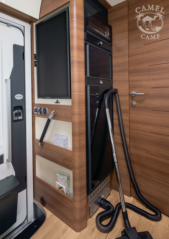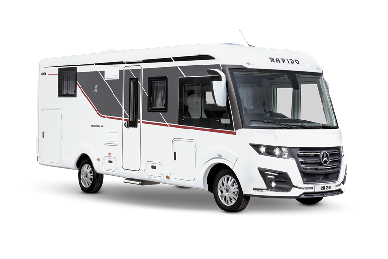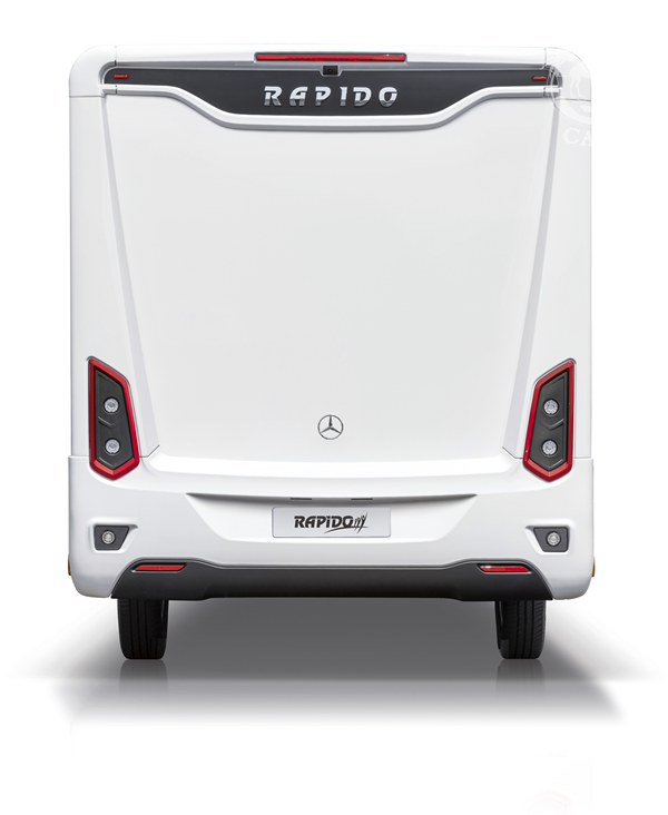 RAPIDO PACK 2025 standard – poduszka kierowcy i pasażera, ABS, ASR, EBV, ESP, TPMS, asystent wspomagający ruszanie pod górę, tempomat z limiterem prędkości, system stabilizacji przeciw bocznym wiatrom, moc 150KM, manualna skrzynia biegów, podwozie HEAVY 4,5t, zbiornik paliwa 93L, RKE – drugi zestaw kluczyków, 17” stalowe felgi, filtr paliwa z separatorem, światła LED do jazdy dziennej, 100% LED tylne światła, elektryczne lusterka boczne z funkcją rozmrażania z podwójnym z obiektywem szerokokątnym, podpory stabilizujące, automatyczne reflektory, kamera cofania z wyświetlaczem wbudowanym w deskę rozdzielczą, sterowanie radiem w kierownicy, system multimedialny MBUX 10.25″, klimatyzacja półautomatyczna TEMPMATIC, centralny zamek kabiny i drzwi kempingowych, elektrycznie regulowana roleta przedniej szyby (góra/dół i dół góra), pokrowce foteli kabiny, ogrzewanie ALDE, bojler ALDE 3030+, podwójna, ogrzewana podłoga AL-KO, schowki w podwójnej podłodze z dostępem od wewnątrz i zewnątrz, schowek na buty, system „Coming Home”, ogrzewany garaż, porty USB lampkach, dwustronnie otwierana lodówka absorpcyjna z zamrażalnikiem 171L, zbiornik wody czystej 130l, zbiornik wody szarej 110l, zbiornik wyrównawczy w układzie wody czystej zapewniający stałe ciśnienie, izolowany i ogrzewany zbiornik szarej wody, 2 palnikowa kuchenka gazowa z iskrownikiem, wyciąg kuchenny z oświetleniem LED, samodomykające się szuflady kuchni z centralnym zamknięciem, podświetlana ściana kuchni, regał na przyprawy, chromowana, mosiężna bateria kuchenna z ceramiczną głowicą, miejsce na TV 32”, druga instalacja TV / HDMI, wbudowany odkurzacz, podwójne szyby kempingowe z moskitierą i zaciemnieniem, drzwi izolujące sypialnie, podświetlany stopień elektryczny, NOVABOX, drzwi kempingowe (z oknem i koszem) i kierowcy blokowane w 2 punktach, moskitiera drzwi kempingowych, izolowany stopień wejściowy, ogrzewanie poprzez nogę stołu (z wyjątkiem nogi teleskopowej), 100% oświetlenie LED w części kempingowej i garażu, 4-strefowy ściemniacz oświetlenia, zewnętrzny prysznic, wieszak do suszenia ubrań, aluminiowa rama łóżka tylnego z elastycznymi listwami, materac piankowy BULTEX® na tylnym łóżku, zawór spustowy elektromagnetyczny zbiornika szarej wody, system do podłączenia 2 butli gazowych z czujnikiem przeciwwypadkowym, akumulator kempingowy AGM 92 Ah, fotele AGUTI GIS Liner 1