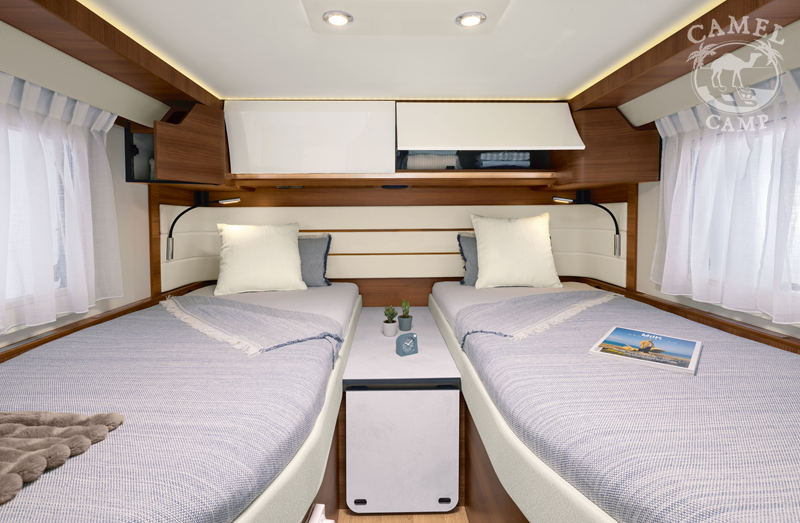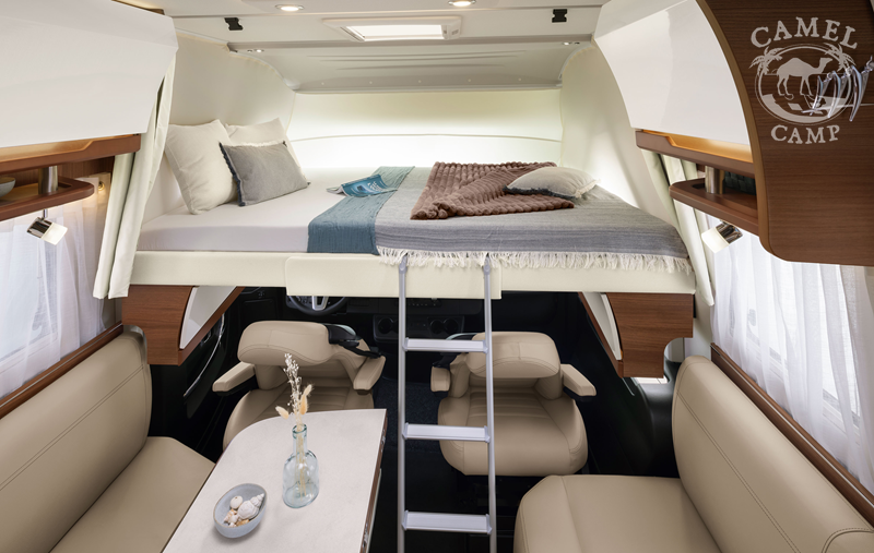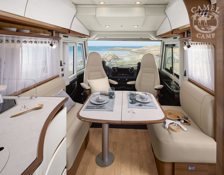 PACK EXECUTIVE – automatyczna skrzynia biegów (9 stopniowa), zwiększona moc 170 KM, alufelgi (16”≤3,88T / 17″=4,5T), skórzana kierownica kierowcy, materac BULTEX® na przednim łóżku, łóżko przednie regulowane elektrycznie, elektryczny hamulec ręczny, przednie światła przeciwmgielne, wyłącznik akumulatora, Apple Car Play / Android Auto, dodatkowe zamykane schowki w kokpicie